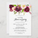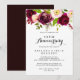 Cette invitation d'anniversaire de mariage de 50 ans bourgogne rosâtre rustique est parfaite pour un simple anniversaire de mariage. Le design présente des fleurs aquarelles roses, rosâtres, rouges, bourgogne et bordo avec un feuillage vert.