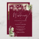 Cet élégant faire-part de mariage à cordes florales bordeaux peut être personnalisé avec vos informations en typographie chic avec votre photo spéciale, les détails du site mariage et votre code QR au verso. Conçu par Thisisnotme©