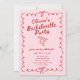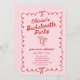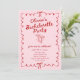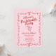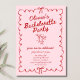 Invitation à la soirée Bow Bachelorette dessinée à la main. Cocktail de doodle rose et rouge Bachelorette Party Invitation. Invitation Whimsical Red Pink Bow Bachelorette avec bordure de gribouillis, arcs et lunettes à martini cocktail.