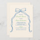 Invitation Bow bleu blanc Fête des mariées manuscrite