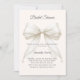 An elegant soft ivory colored background, decorated with a large bow with pearls. Personalize and add a name and party details.