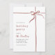 Invitation vos invités dans le style avec notre Chic Red Bow Holiday Party Invitation! L'avant de cette carte est orné d'un ruban rouge et d'un arc fantaisistes dessinés à la main, de sorte que la carte ressemble à un cadeau! Les détails de la fête sont imprimés sur le côté gauche dans un agencement chic et minimaliste, avec "fête" en simple lettrage rouge serif et les noms des hôtes en écriture rouge élégante. Les détails suivent dans une simple typographie serif, gardant le design propre et sophistiqué. Le revers complète le look avec des rayures blanches chics dessinées à la main contre un arrière - plan rouge festif. Parfait pour les amateurs de design moderne et minimaliste avec une pointe de fantaisie et de charme !