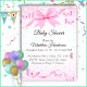 Transformez votre fête de baby shower en un événement mémorable avec cette invitation de fille. Cette invitation présente un design rose et frileux avec des arcs, des papillons et une atmosphère élégante. C'est la façon idéale de donner le ton pour la journée et de faire en sorte que vos invités passent un agréable moment.