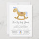 Invitation Boy Blue Gold Retro Rocse Baby shower Cheval