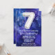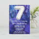 Garçon bleu blanc 7ème anniversaire invitation garçons 7 anniversaire invitation pour un garçon bleu violet avec écriture de script moderne et ballon en papier amusant.