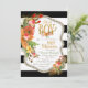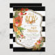 Baby shower de cerf Antler invitation avec fleurs d'aquarelle et parties scintillant or et papier d'aluminium accent pièces sur un arrière - plan noir et blanc.