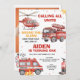 This boys rescue themed birthday invitation features a fire truck, helicopter, ambulance, fire hydrant and a photo on the back. Can be used for any age and is ideal for a boys birthday party.
