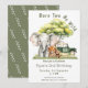 Célébrez le deuxième anniversaire de votre petit explorateur avec cette aventure Boys Wild Jungle Safari Invitation anniversaire! Le design se compose d'une scène ludique avec un tigre, un éléphant, un singe et une voiture de safari, entourée de végétation luxuriante dans la jungle. Ce design est plein d'énergie et de plaisir. La palette de couleurs terreuses et la typographie audacieuse de Born to Be Wild ajoutent enthousiasme et style. Ce design est idéal pour deux fêtes d'anniversaire sauvages qui comprennent des ballons d'animaux, des jeux de jungle et une variété de gâteries sauvages. Personnalisez-le facilement en ajoutant les détails de l'anniversaire de votre enfant. Préparez-vous à une aventure safari d'anniversaire épique !