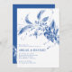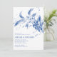 Cette magnifique invitation à la douche en couple mariage se targue d'un magnifique agencement de fleurs éthérées bleu et blanc comme élément principal. Son design délicat et gracieux le rend parfait pour une célébration mémorable. À l'envers, vos initiales sont présentées dans un cadre, accompagnées d'une étonnante guirlande florale blanche contre un arrière - plan bleu.