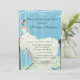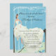 Commencez votre évènement avec notre invitation à la douche nuptiale moderne et branchée, avec une belle mariée assise sur une clôture avec un arrière - plan bleu. customisez notre invitation avec vos informations mariages et vous êtes prêts à partir.