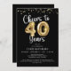 Célébrez un 40e anniversaire avec ces invitations de fête élégantes et festives avec le titre CHEERS TO 40 YEARS avec des numéros de ballon d'or faux métallique et typographie de script moderne et confetti dans votre choix de couleur arrière - plan (montré en noir). ASSISTANCE : Pour obtenir de l'aide sur la modification ou la personnalisation de la conception, le transfert de la conception à un autre produit ou si vous souhaitez coordonner des éléments, contactez le concepteur AVANT de commander par Zazzle Conversation ou par courriel makeitaboutyoustore@gmail.com.