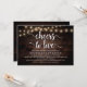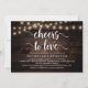 Calligraphie moderne Carte d'invitation à la douche nuptiale (Cheers to Love), en bois foncé rustique lampes à cordes design thème. Invitation les invités avec cette carte d'invitation parfaite. Ajoutez les détails de votre douche nuptiale dans le libellé correspondant.