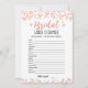Achetez ce jeu et profitez d'une carte de jeu de mots nuptiale de haute qualité pour votre événement! Débrouillez les mots mariages ! Conception de confettis rose Gold. RÉPONSES : 1-GIFTS, 2-ANNEAUX, 3-BRIDE, 4-MARIAGES, 5-INVITÉS, 6-GÂTEAU, 7-GROOM, 8-BRIDESMAID, 9-DRESS, 10-CHAPEL, 11-USHERS, 12-MARIAGE, 13-HONEYMOON, 14-VOWS, 15-BAGES EST MAN