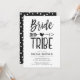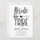 Une invitation de brunch de mariage sur mesure pour votre groupe de femmes de confiance. Elle présente un thème classique en noir et blanc avec les mots bride tribe écrits dans une police de style manuscrit. Entre les deux mots se trouve une flèche tribale perçant un cœur.