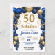 Bright and colorful blue and gold balloon arch any age birthday invitation, change the text yourself when you order