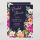 Illustration de fleurs d'été modernes et brillantes avec une fleur sauvage assez surdimensionnée et une douche de mariée avec un script de brosse avec une typographie de calligraphie moderne avec des fleurs rose néon, orange, vert et jaune sur arrière - plan bleu marine.
