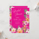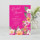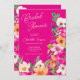 Illustration de fleurs d'été modernes et brillantes avec une fleur sauvage assez surdimensionnée et une douche de mariée avec un script de brosse avec une typographie de calligraphie moderne avec des fleurs rose néon, orange, vert et jaune sur arrière - plan rose néon.