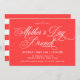 Une belle élégante et féminine invitation au brunch de la Fête des Mères dans le corail brillant avec de belles notes de calligraphie et texte blanc. Le revers de l'invitation a un corail assorti et des rayures blanches motif. Personnalisez avec les détails de votre événement.