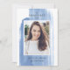 Célébrez le jalon de votre diplômé préféré avec une carte de faire-part de remise de diplômes en photo frappante. Ce faire-part de la carte de graduation offre un design assez minimal avec des coups de pinceau d'aquarelle bleu marine foncé avec une pièce pour une image verticale senior de votre belle grade! Personnalisez la carte en ajoutant votre photo, nom et année. Ajoutez un message supplémentaire au dos à l'aide du modèle. La couleur inverse gris foncé correspondante peut être facilement modifiée. Autres couleurs disponibles.