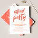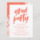 Invités Invitations pour célébrer la grade avec nos invitations modernes de la fête de graduation! Les invitations branchées à la fête de remise de diplômes comportent une "fête de grad" dans une police de pinceau peinte en corail. Personnalisez les invitations créatifs de la fête de remise de diplômes en ajoutant le nom du diplômé, le nom de l'école, l'année de remise de diplômes et les détails de la fête de remise de diplômes. Les invitations s'inversent pour afficher une conception corail et blanc brosse.