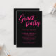 Ce design d'invitation rayonne de sophistication et de simplicité avec une esthétique minimaliste moderne. La palette de couleurs est strictement rose et noir, assurant un look élégant et intemporel. Les mots "Grad Party" occupent le devant de la scène, écrits dans un script de brosse accrocheur qui ajoute une touche ludique et chic à la disposition. En-dessous, des polices sans serif propres et propres affichent gracieusement les détails de l'événement de manière structurée et organisée.
