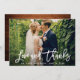 Brush Script moderne Amour et merci Carte de remerciements photo Mariage - Bois rustique Retour