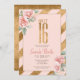 Célébrez dans le style avec ce modèle d'invitation unique en Sweet sixteen avec une grande feuille d'or imitation 'Sweet 16'. L'arrière - plan en or rose solide est bordé de bandes diagonales dans le même effet de feuille d'or avec des roses roses luxuriantes dans les coins opposés. Si vous le préférez, le "Sweet 16" attrayant est facultatif et peut être supprimé pour utiliser ce modèle à d'autres occasions. Utilisez le modèle fourni pour customiser les détails de votre événement. Recherchez ID757 pour voir d'autres produits et options de couleur pour cette conception.