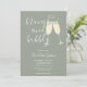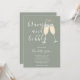 Un élégant brunch et une invitation à la douche à bulles avec des lunettes de champagne et un nom de script signature, cette invitation élégante peut être personnalisée avec vos informations en lettrage chic sur un arrière - plan vert sage. Conçu par Thisisnotme©