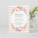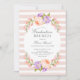 Des invitations à des soirées de remise de diplômes personnalisées et abordables, personnalisées avec les détails de votre événement. Ce joli design botanique présente un cadre aquarelle de pêche et de fleurs de lavande sur un arrière - plan rayé roux. Utilisez les outils de conception pour customiser le texte, modifier les polices et les couleurs ou ajouter vos propres photos pour créer une élégante invitation à la graduation florale printanière.