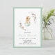 Rendez votre brunch de Pâques encore plus spécial avec cette belle invitation vert sauge clair. Le design comprend un joli dessin d'aquarelle d'un lapin ludique dans une coquille d'oeuf entouré de fleurs sauvages de printemps, ce qui en fait la meilleure façon d'invitation votre famille et vos amis à votre rencontre festive!