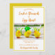 Invitation moderne et colorée pour un brunch de Pâques et une chasse aux oeufs avec poussins jaunes et oeufs verts. Le texte est personnalisable, il suffit de cliquer sur "Personnaliser ce produit".
