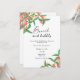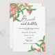 Carte de douche nuptiale à thème aux fruits d'aquarelle illustrant l'aquarelle des pêches sur une branche d'arbre. Élégante écriture calligraphique, parfaite pour les mariages du printemps, de l'été ou de l'automne. Éléments correspondants disponibles.