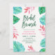 Cette superbe invitation à brunch avec douche tropicale nuptiale présente des feuilles de palmiers d'aquarelle dans les tons bleu, vert et rose ainsi qu'une typographie assortie pour un look tendance et moderne.