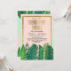 La frontière d'or imprimée par faux tropical élégante de plage, chic, et moderne et les frondes de palmier et le feuille verts de banane sur l'ombre vert rose et en bon état de gradient avec le faux ont imprimé l'été de typographie de feuille d'or pétillant et les invitations de Fête de la mariée de brunch. Cette conception classique et sophistiquée est parfaite pour n'importe quel événement élégant et à la mode, y compris des mariages et des occasions quotidiennes. Personnalisez avec votre propre message sur l'avant aussi bien qu'une initiale customisée de monogramme sur le dos. Toute la conception d'impression de photo.