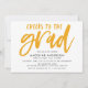 Invités Invitations à votre fête de remise de diplômes avec nos invitations chic et branché Cheers to Grad graduation ! Les invitations modernes de la fête de remise de diplômes mettent en vedette l'expression "Cheers to the grad" dans un script de pinceau jaune doré, écrit à la main, avec les détails de votre fête affichés ci-dessous. Les invitations de la fête de remise de diplômes renversent vers un motif abstrait jaune et blanc en or. Parfait pour les fêtes de fin d'études secondaires et collégiales !