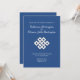 The knot, one of the eight auspicious symbols in Buddhism, is perfect for a wedding ceremony, as it represents connection with everything and also stands for happiness, harmony, and a long life. The blue symbolizes good fortune and sublimity and, together with the knot, forms a wonderfully symbolic unity for this invitation card.