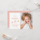 Une invitation fantaisiste à la fête d'anniversaire photo avec des arcs-en-ciel, grand nom, âge personnalisé et casquettes de fête.
