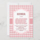 Le buffle rose et blanc a lancé une invitation à la fête du 1er anniversaire avec un numéro à carreaux rose pâle et blanc et un texte rose correspondant.