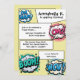 Cette invitation de fête personnalisée présente un thème de bande dessinée coloré sur fond jaune. Les mots et les phrases d'action de bande dessinée populaires à l'intérieur de bulles de dialogue tels que "Oh, Snap", "OMG!" "BOOM!" et "WOW!" sont placés autour des bordures. Les informations sur l'événement sont imprimées à l'intérieur de boîtes de dialogue qui ressemblent à des bandes dessinées typiques. C'est parfait pour une fête de mariage, un anniversaire ou une autre célébration excitante.