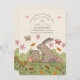 Une invitation charmante avec des lapins de mère et de bébé entourés de fleurs, feuillage, papillons et paysage de coeurs. Adorable comme une invitation baby shower, invitation de fête d'anniversaire, aussi bien adapté à toutes les fêtes de Pâques.<a href='http://www.freepik.com/free-vector/vintage-card-of-easter-bunnies-in-a-landscape_1054779.htm'>Conçu par Freepik</a>).