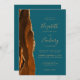 Le bord gauche de cette élégante faire-part de mariage moderne est orné d'une bordure d'aquarelle orange brûlée, recouverte d'une parties scintillant en faux or. Le texte personnalisable combine écriture manuscrite dorée, cuivre et polices italiques sur un arrière - plan bleu turquoise. L'envers offre de l'espace pour les détails mariages sur un arrière - plan turquoise solide, ainsi qu'un code QR que les clients peuvent scanner pour visiter votre site Web et RSVP, ce qui permet d'économiser le coût d'impression et d'envoi de cartes RSVP séparées.
