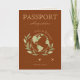 Carte du monde Boho moderne Invitation Mariage Destination, comme passeport, avec votre monogramme. Couleur arrière - plan orange brûlé