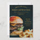 Profitez d'une soirée Burgers and Brews - nourriture, plaisir et amis! Célébrez cette saison d'été avec une soirée jardin burger. Incendez le grill et mangez des hamburgers avec vos amis ! Invitations de soirées à thème amusantes avec une délicieuse photo d'un hamburger juteux et d'un arrière - plan varié bleu foncé et vert. Entièrement personnalisable avec des modèles tout en étant prêt à être personnalisé pour n'importe quel événement amusant que vous avez en tête.