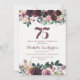 Elégant bordeaux et rose vif aquarelle floral avec des feuilles verts sauge sur l'invitation à la fête blanche de 75e anniversaire avec une belle police de script de calligraphie.
