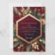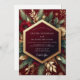 Rich burgundy hues create a dramatic backdrop for this festive design. Accents of deep green pine sprigs and golden-toned leaves evoke a sense of opulent celebration. The arrangement suggests a sophisticated and memorable occasion.