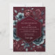 This design features a rich burgundy backdrop adorned with moody, romantic floral illustrations in muted blues and deep reds. Evokes an atmosphere of intimate enchantment and sophisticated elegance. Perfect for a darkly romantic affair.