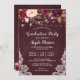 Invitation Burgundy Floral String Light Lace Graduation Party