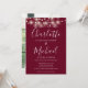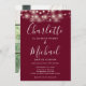 Avec de jolies lampes à cordes et des noms de style signature, cette élégante invitation de mariage peut être personnalisée avec vos détails de jour de mariage en lettrage blanc chic sur un arrière - plan bordeaux avec votre photo choisie au verso. Conçu par Thisisnotme©