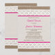 Ce burlap rustique et vintage invitation à la douche nuptiale en dentelle blanche fera le faire-part parfait pour toute future mariée ! Le design est composé d'un bel arrière - plan rustique à effet burlap avec une dentelle blanche vintage romantique et un rideau rose. Ces invitations peuvent être personnalisées pour votre occasion spéciale et feraient le faire-part parfait pour tout mariage rustique, douche nuptiale, fête de fiançailles, fête d'anniversaire et bien plus encore. *Veuillez noter que Zazzle ne vend que des invitations imprimées, de sorte que ces invitations n'ont pas de matériel de burlap, dentelle ou ruban.