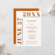 Brûlé orange et blanc des invitations à la remise des diplômes ou annonces de remise des diplômes, il suffit de changer le libellé pour s'adapter à votre événement. PLUS DE COULEURS PRÉ-FAITES dans notre magasin.